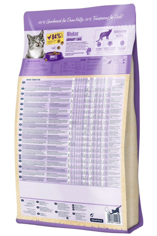 Happy Cat Minkas Urinary Care with Poultry is a gentle and balanced complete food for adult cats. High-quality, easily digestible protein and reduced levels of magnesium and phosphorus can lower the pH of the urine and thus preventatively relieve the urinary tract. Manufactured in Germany under strict quality control.