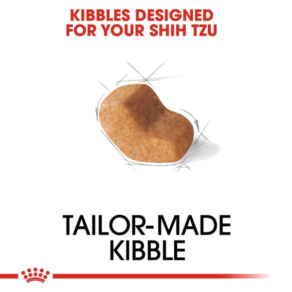 Suitable for dogs over 10 months old, ROYAL CANIN® Shih Tzu Adult is specially formulated with all the nutritional needs of your adult Shih Tzu in mind. ROYAL CANIN® Shih Tzu Adult contains an exclusive combination of nutrients that help to maintain your dog’s skin health – which in turn positively affects the health of its coat. This formula includes the omega-3 fatty acids EPA and DHA, as well as an enrichment of borage oil; these fatty acids play a large role in helping to nourish your dog’s skin and coat. ROYAL CANIN® Shih Tzu Adult’s adapted nutritional solution also contains calcium chelators, which contribute towards the maintenance of your dog’s dental hygiene. ROYAL CANIN® Shih Tzu Adult helps to maintain the health of your dog’s digestive function by contributing to a reduced faecal volume – and what’s more, it also helps to reduce the smell! The kibble in ROYAL CANIN® Shih Tzu Adult is tailor-made exclusively for this breed. Its shape and size are specially designed to make it easier for your dog to pick up and chew.