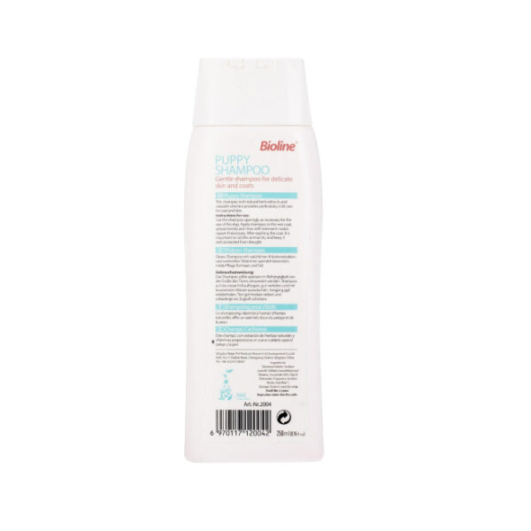 Bioline puppy shampoo, with natural herb extracts and valuable vitamins, provides particularly mild care for pet’s coat and skin. Ideal for puppies.