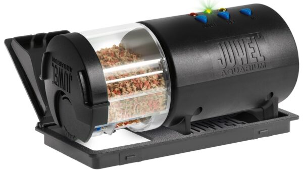 For environments with particularly high humidity, the JUWEL automatic feeder is designed so that the drum can be ventilated using an ordinary air pump. The JUWEL automatic feeder is supplied with batteries.
