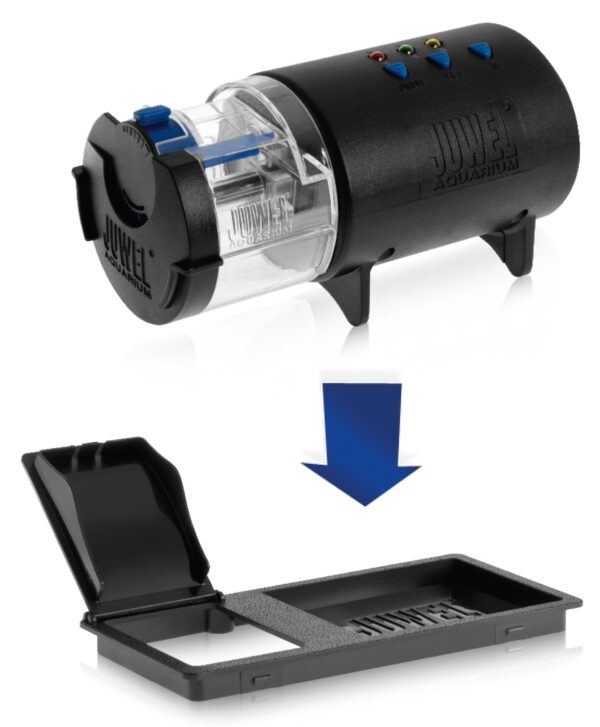 The JUWEL automatic feeder can be used in any aquarium. Using the right mounting support, it can be fitted particularly simply and quickly to any JUWEL aquarium.