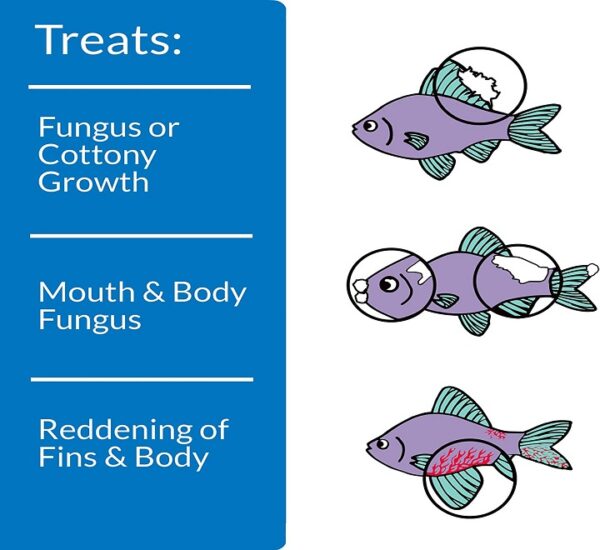 API® PIMAFIX fish remedy is an all-natural, antifungal remedy for fish fungal infections, with a formula derived from the West Indian Bay Tree – a proven natural antifungal. API PIMAFIX fish remedy rapidly treats cottony growth, mouth, body fungus, and the reddening of the fins and body, in addition to both internal and external bacterial infections.