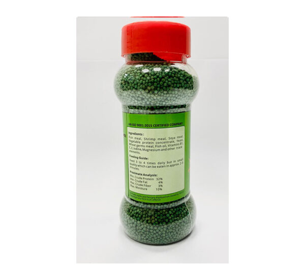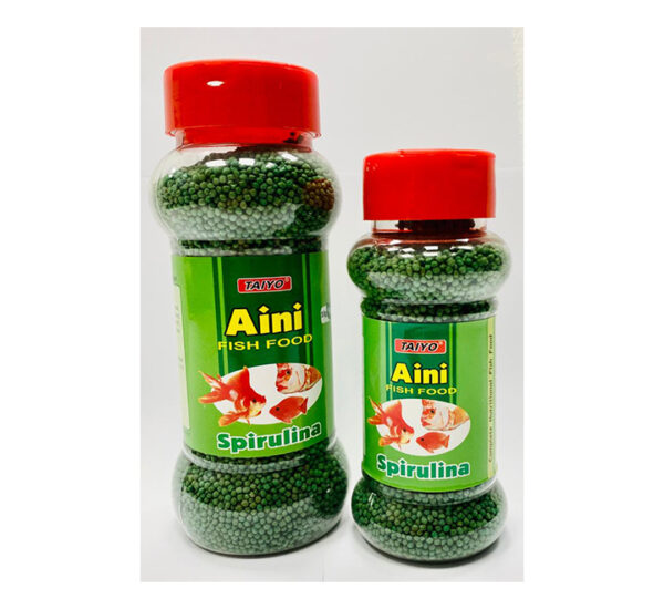 Aini Spirulina fish food is specially formulated for all varieties of fresh water fish. The formulation is designed to provide the proper nutrition required for healthy growth, body shape, coloration & sexual maturity.